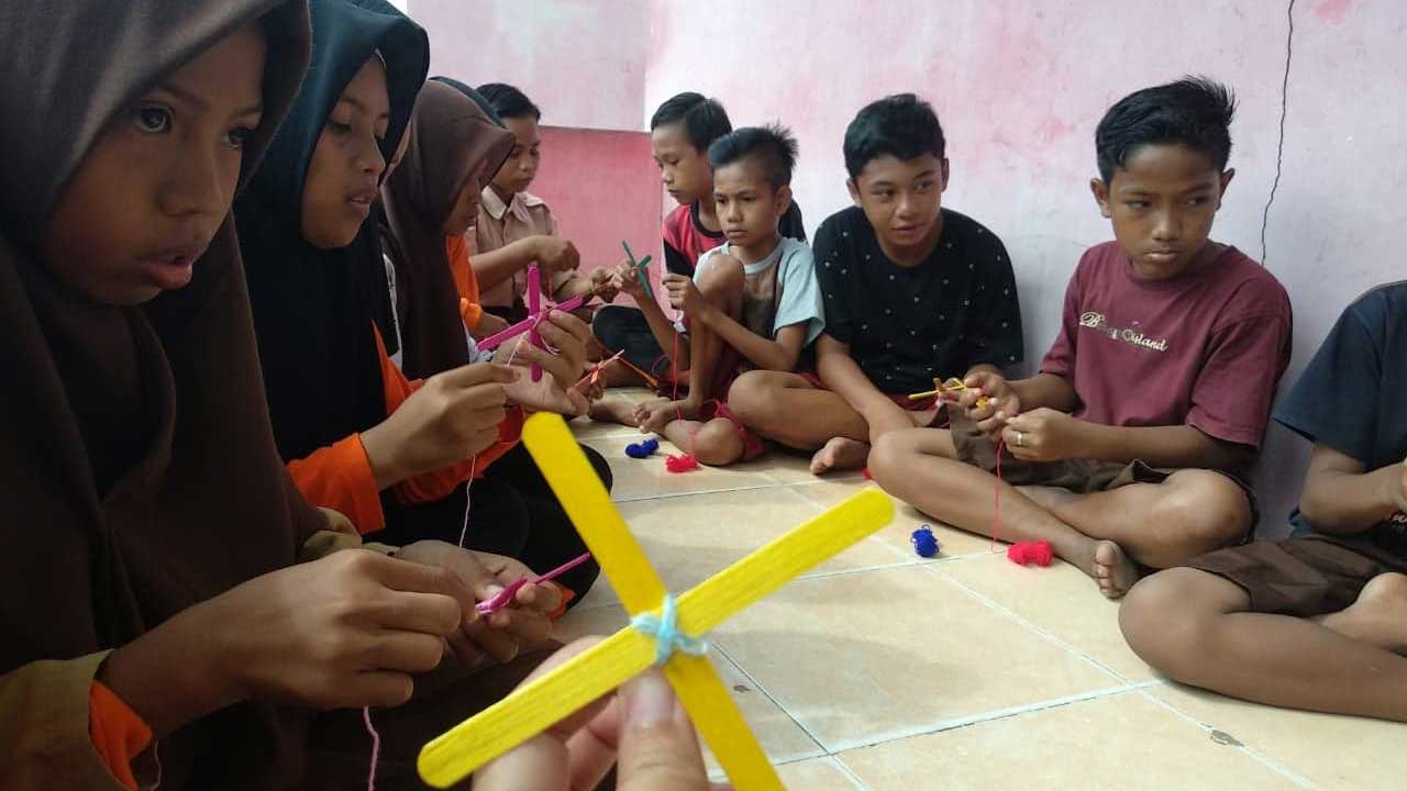 99Tim Psychological First Aid (PFA) – Kelompok Kerja Pasigala Tangguh yang didukung oleh Caritas Jerman, menyambangi di Desa Potoya dan Desa Soulowe, Kecamatan Dolo, Kabupaten Sigi, pada 17 November 2018. Ini adalah kali pertama Tim PFA datang ke komunitas warga terdampak bencana pascabbencana 28 September 2018. Tim PFA yang semuanya berjumlah 20 orang, yang sebelumnya telah mendapatkan pembekalan dan pelatihan dari Friends of Waldorf Education (FWE), sebuah lembaga dari Jerman yang fokus memberikan pelatihan pedagogy emergency, akan memberikan layanan pedagogical dan psychological first aid kepada anak-anak di kedua desa tersebut. Tim PFA dibagi dua, masing-masing sepuluh orang di setiap desa. Di Desa Potoya, Tim PFA berkunjung dan bermain dengan siswa yang bersekolah di SDN 4 Potoya; sedangkan di Desa Solouwe, Tim PFA mengunjungi siswa yang bersekolah SDN Inpres yang terletak di Dusun 1, RT 1. Metode PFA yang digunakan bersama siswa-siswa sekolah dasar tersebut adalah sama.Proses PFA di Desa PotoyaGedung sekolah SDN 4 Potoya tampak masih berdiri cukup kuat pascabencana. Meskipun demikian, para guru dan siswa yang bersekolah di sana masih belum berani menggunakan dan berlama-lama di ruang kelas. Ketika kami datang, di saat itulah untuk pertama kalinya mereka mulai berani menggunakan gedung sekolah.Tim PFA disambut hangat oleh tiga ibu guru dan para siswa yang sudah berkumpul di sana. Semuanya berjumlah sekitar 70 orang.Selepas perkenalan, sesi dilanjutkan dengan permainan yang diatahkan untuk membangun kebersamaan mereka. Para siswa diminta untuk saling berpegangan tangan, membentuk lingkaran, dan mulai bernyanyi: “Tumbai… tumbai… tumbai… tumbai… lalalala... liililla....” Aktivitas bermain kemudian dilanjutkan untuk memusatkan perhatian siswa, dan membagi mereka menjadi empat kelompok besar yang masing-masing dipandu oleh Tim PFA: (1) Kelompok Bercerita, untuk siswa kelas 1 dan kelas 2; (2) Kelompok Menggambar dan Mewarnai, untuk siswa kelas 3; (3) Kelompok Gerak, untuk siswa kelas 4 dan kelas 5; dan (4) Kelompok Kerajinan Tangan, untuk siswa kelas 6.Kurang lebih 15 menit kami akan melakukan aktivitas ini. Di Kelompok Kerajinan Tangan, Tim PFA memandu siswa kelas 6 membuat ‘Jaring Laba-Laba’. Bahan dan alat yang digunakan adalah stik es krim dan benang woll.Kelompok Kerajinan Tangan bersama adik-adik kelas 6 SDN 4 Potoya, akan berkreasi membuat Jaring Laba-Laba.Tim membagikan alat-alat sederhana itu kepada mereka dan kemudian mencontohkan terlebih dulu bagaimana cara membuat jaring laba-laba tersebut. Para siswa kelas 6 itu dengan sangat antusias kemudian belajar menirunya. Mereka pun lantas larut dalam semangat meneruskan kreasinya masing-masing. Kerajinan tangan ini melatih ketelitian dan kesabaran.Ada yang langsung mendapat pola jaring laba-labanya, ada pula yang lalu kebingungan di tengah jalan. Tim PFA mencontohkan lagi ke mereka yang masih bingung, sampai akhirnya mereka bisa dan kembali melanjutkan kreasi jaring laba-labanya itu.Kak Ricky, dari Tim PFA, sedang memberi contoh kepada para siswa bagaimana cara membuat kerajinan Jaring Laba-Laba.Di tengah mereka yang terus berkreasi, Tim PFA terus mengajak mereka bercakap dan bercanda. Waktu lewat tak terasa. Mereka pun tampak terus asyik membuat jaring laba-laba. Satu anak berhasil menyelesaikan jaring laba-labanya lebih dulu. Ia menunjukkannya kepada kami. Teman-temannya pun kagum.“Wuiih. Keren dia punya, le,” puji mereka. Hasil kreasi itu kemudian menjadi penyemangat bagi yang lain.Kegiatan ini menciptakan momen yang menyenangkan, karena mereka bisa belajar hal baru. Hingga waktu usai, mereka masih ingin terus melanjutkan.“Kak, tunggu dulu. Masih asyik,” ucap mereka sambil terus memutar-mutar benang dan stik es krim.Para siswa yang asyik berkreasi membuat Jaring Laba-Laba. Hingga waktu usai, mereka masih ingin terus melanjutkan.Sebagai penutup dari rangkaian aktivitas ini, semua kelompok kembali diarahkan kembali ke lapangan untuk membentuk lingkaran. Mereka kembali diajak untuk melingkar dan melakukan beberapa gerakan seperti yang dilakukan di saat pembukaan.Hasil Kelompok Kerajinan Tangan: kreasi Jaring Laba-Laba.Tim PFA menyatakan, mereka merasa sangat lega bisa menyelesaikan rangkaian tahapan aktivitas hari itu. Kecemasan tentang apakah kegiatan akan lancar, apakah mereka masih ketakutan, apakah kami mampu tampil baik untuk adik-adik di sana, dan apakah semua latihan yang telah kami lakukan sudah cukup membentuk kami untuk menjadi teman bermain dan belajar yang menyenangkan bagi mereka, sekurang-kurangnya terjawab sudah.Hal yang pasti, sebagai pengalaman pertama, Tim PFA memandang kegiatan berjalan dengan lancar dan mereka tidak grogi. Tentu, mereka pun menyadari dan mencatat, ada berbagai perbaikan dan pembenahan yang perlu dilakukan agar proses yang mereka lakukan bisa lebih baik lagi di masa datang.***