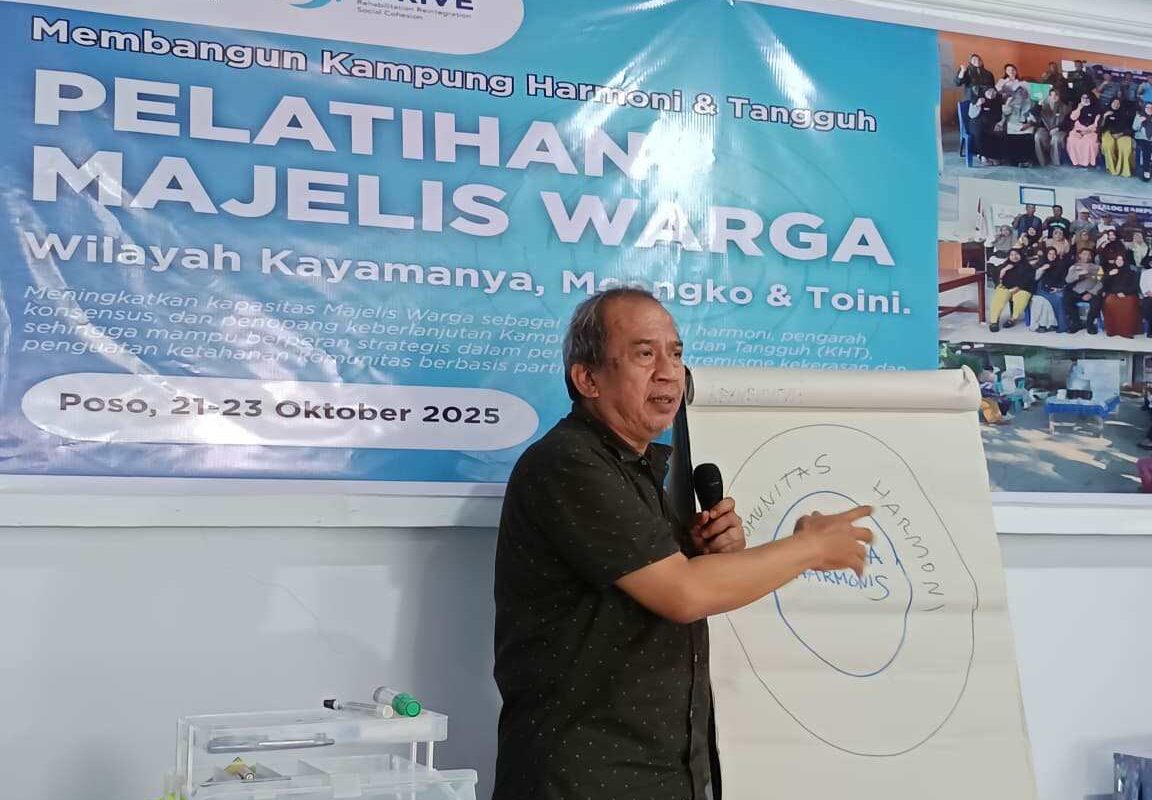 5Kegiatan Pelatihan Majelis Warga: Membangun Kampung Harmoni dan Tangguh pada 21–23 Oktober 2025 di Kabupaten Poso. Pelatihan ini bertujuan memperkuat kapasitas masyarakat dalam penguatan peran komunitas dalam PCVE mencegah dan menangani kekerasan ekstrem berbasis komunitas, serta membangun konsep Kampung Harmoni dan Tangguh di wilayah Poso. Dalam hal ini, penguatan peran komunitas dalam PCVE berarti memastikan bahwa komunitas berperan aktif dan partisipatif dalam perdamaian. Berbagai unsur masyarakat, tokoh agama, aparat desa, dan perwakilan pemerintah daerah berpartisipasi dalam kegiatan ini. Hal ini menunjukkan komitmen mereka terhadap upaya perdamaian dan ketahanan sosial di daerah pascakonflik. Kegiatan ini difasilitasi oleh Budhi dan Nurlaela Lamasitudju, dengan Tomzil Prafdal Lagole sebagai co-fasilitator.Tiga Hari Pembelajaran dan Dialog PerdamaianPelatihan ini dimulai pada Selasa, 21 Oktober 2025, dengan sesi pembukaan dan penyusunan kontrak belajar kemudian Fasilitator mengajak peserta untuk menceritakan Memori Baik tentang Poso, yang bertujuan membangkitkan kembali nilai-nilai harmoni dan kebersamaan. Nilai-nilai tersebut dulunya hidup di tengah masyarakat sebelum konflik terjadi. Sesi ini menjadi pengantar untuk menggali kembali potensi sosial dan budaya yang dapat memperkuat perdamaian di tingkat komunitas.Pada hari yang sama, peserta juga mendapatkan materi mengenai Hak Asasi Manusia dalam Kerangka Kerja Pencegahan dan Penanganan Kekerasan Ekstrem, serta mengikuti diskusi bertema “Membangun Gagasan Kampung Harmoni dan Tangguh”. Sesi ini membantu peserta memahami cara mengintegrasikan prinsip hak asasi manusia dalam pendekatan perdamaian berbasis masyarakat yang sejalan dengan penguatan peran komunitas dalam PCVE.Kolaborasi Pemerintah dan Warga Jadi Kunci PerdamaianHari kedua pelatihan (22/10/2025) berfokus pada pentingnya kolaborasi antara pemerintah daerah dan warga dalam menjaga keamanan dan perdamaian di Poso. Narasumber dari Bapelitbangda Poso, ERNY OLIVIA MALAKA, ST., M.Eng membagikan pengalaman dan strategi kolaboratif antara lembaga pemerintah dan komunitas. Tujuannya adalah membangun masyarakat yang inklusif dan tangguh.Peserta mempelajari bagaimana warga dapat berpartisipasi aktif dalam menjaga harmoni sosial dan memperkuat ketangguhan komunitas. Penguatan peran komunitas dalam PCVE memungkinkan warga untuk mengambil tindakan nyata dalam pencegahan kekerasan ekstrem. Mereka juga mengenal metode Participatory Rural Appraisal (PRA) atau Bagan Kecenderungan Perubahan sebagai alat untuk menganalisis kondisi sosial di lingkungan mereka. Melalui metode ini, peserta belajar mengidentifikasi potensi lokal, memahami dinamika masyarakat, dan merancang strategi kolaboratif untuk membangun ketahanan sosial.Majelis Warga Sebagai Ruang Demokrasi LokalHari terakhir pelatihan pada 23 Oktober 2025 menyoroti pentingnya ketangguhan komunitas dalam menghadapi kekerasan ekstrem. Para peserta mempelajari langkah-langkah pencegahan, mitigasi, penanganan, dan reintegrasi sosial. Ini bertujuan memperkuat daya tahan masyarakat terhadap potensi konflik. Pembahasan ini menegaskan peran penting komunitas dalam menjaga keberlanjutan perdamaian. Selain itu, mencegah kekerasan di masa depan.Selanjutnya, fasilitator mengajak peserta mendalami Model Kelembagaan Majelis Warga. Ini adalah sebuah wadah partisipatif yang mendorong warga di tingkat kampung untuk berdialog, mengambil keputusan bersama, dan mengelola isu sosial secara demokratis. Melalui sesi ini, peserta dapat memperkuat perannya dalam menciptakan tata kelola sosial yang damai dan inklusif, sejalan dengan penguatan peran komunitas dalam PCVE untuk keberlanjutan perdamaian.Pelatihan ditutup dengan sesi presentasi program STRIVE – Membangun Kampung Harmoni dan Tangguh. Di sesi ini, para peserta memaparkan penerapan nilai-nilai toleransi dan kolaborasi di tingkat akar rumput. Tujuannya untuk memperkuat ketahanan sosial di komunitas mereka. Kegiatan ini menunjukkan bagaimana peserta secara aktif membangun lingkungan yang inklusif, harmonis, dan tangguh. Mereka melakukannya melalui aksi nyata di komunitas masing-masing. Peserta kemudian menyusun Rencana Tindak Lanjut (RTL) sebagai langkah konkret. Tujuannya untuk menerjemahkan hasil pelatihan ke dalam aksi nyata di komunitas masing-masing. Dengan semangat kolaboratif, para peserta berkomitmen untuk membangun kampung yang harmonis, tangguh, dan bebas dari kekerasan ekstrem.Perkuat Ketangguhan Sosial PascakonflikSKP-HAM Sulawesi Tengah terus memperkuat kapasitas warga di daerah pascakonflik Poso, melalui program STRIVE. Inisiatif ini menjadi bagian dari komitmen SKP-HAM untuk mendorong pemulihan sosial. Selain itu, meningkatkan peran aktif masyarakat dalam membangun perdamaian di wilayah tersebut. Pendekatan berbasis komunitas menjadi strategi utama. Hal ini memastikan perdamaian dapat tumbuh dari partisipasi masyarakat secara langsung.Selama tiga hari pelaksanaan, para peserta tidak hanya mendapatkan pengetahuan teoritis, tetapi juga keterampilan praktis dalam merancang program berbasis komunitas yang berkelanjutan. Penguatan peran komunitas dalam PCVE sangat ditekankan untuk mencegah risiko konflik di masa depan. Kegiatan ini ditutup dengan evaluasi dan refleksi bersama, menandai komitmen bersama untuk terus membangun Poso yang damai, inklusif, dan tangguh terhadap kekerasan ekstrem.